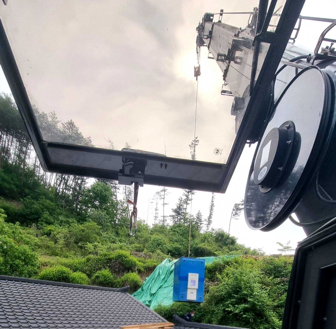이번 작업은 오래된 개인주택에 설치된 보일러를 교체하기 위한 인양 작업이었고, 주택 지붕 너머로 자재를 안정적으로 옮겨야 했기 때문에 정밀하고 신중한 크레인 조작이 필요한 상황이었습니다.